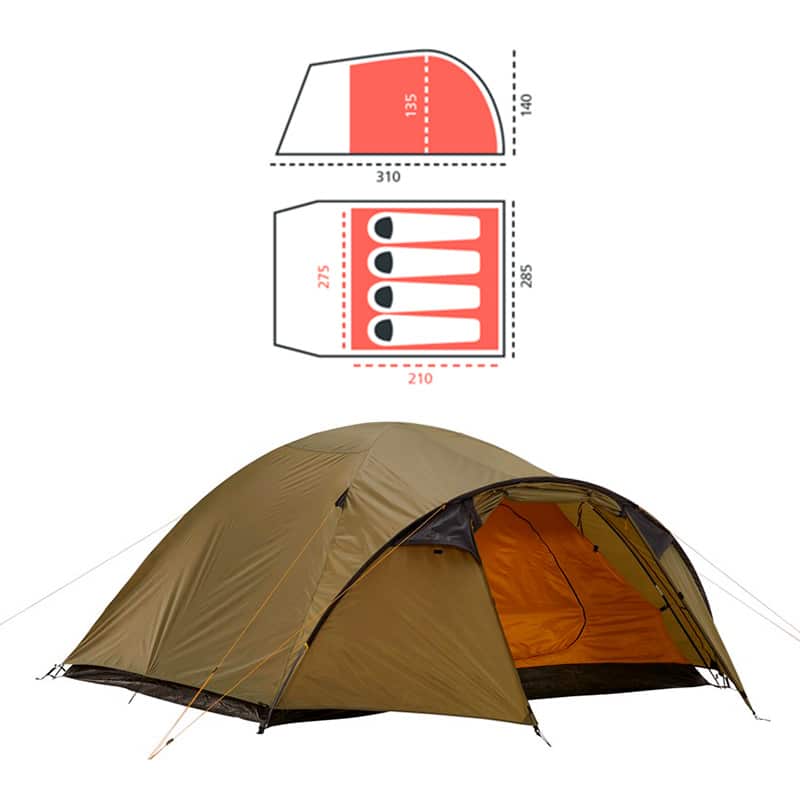 Antal personer: 4 – Klik på billedet for at se størrelse på teltet.