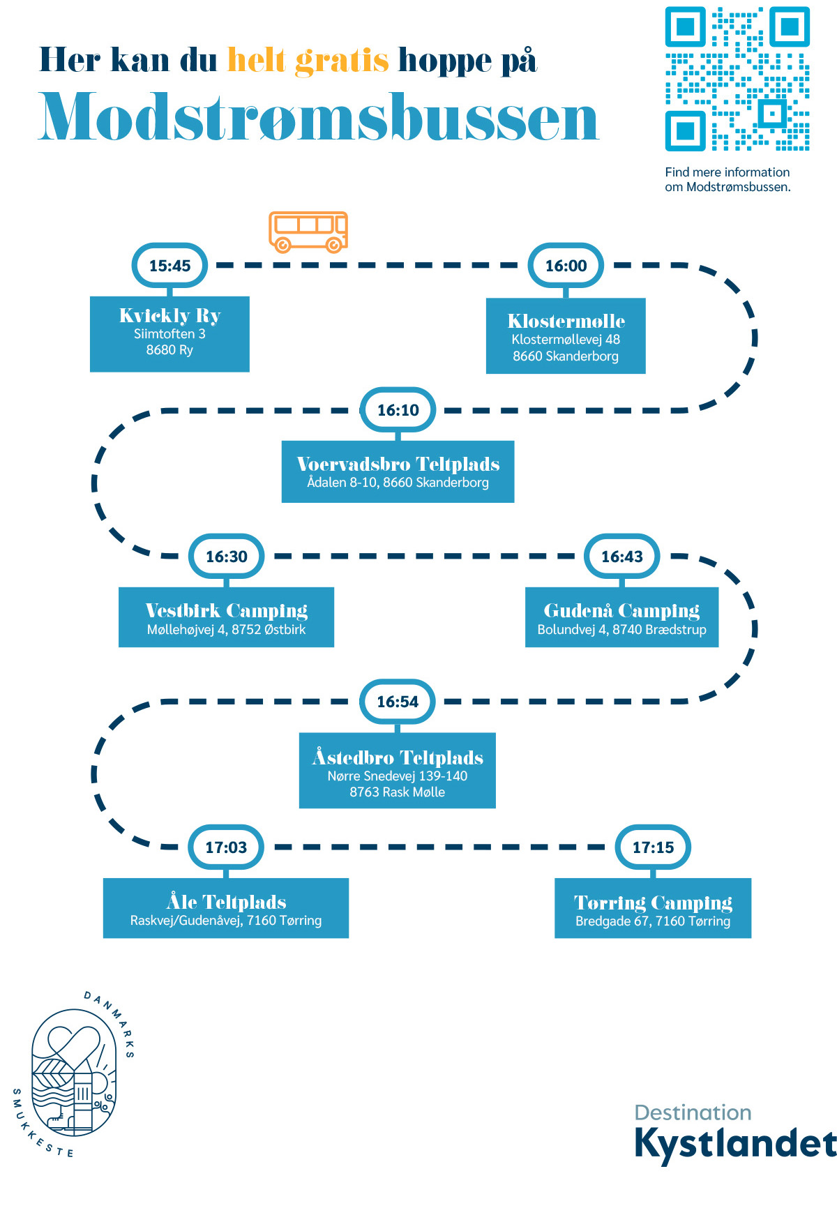 Der Bus hält an den Campingplätzen und Zeltplätzen der Region, bei Tørring Kanoudlejning und bei Tørring Camping & Å Café.